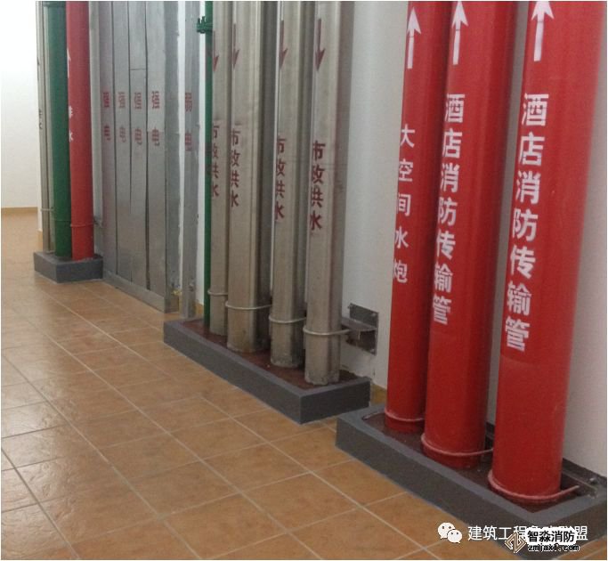 2、水锣(水力警铃)设置在报警阀室外的走道内