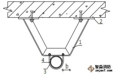 1.角钢 2.连接板(8mm) 3.管码 4.管道