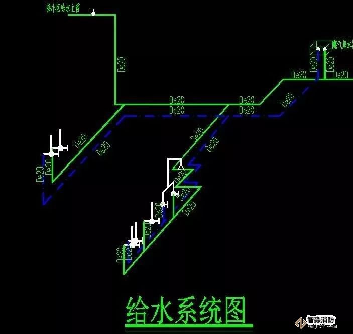 (3)对于大型公共建筑、高层建筑给水施工图.要审核有无单独的消防用水系统。而它不能混在一般用水管道中它应有中一独的阀门井中,单独管道,单用阀门。放置阀门井的位置是否便少启闭.便少检修.周围有无障碍物.以确保消防时紧急使用。