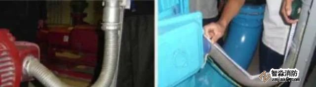 (4)消防水泵吸水管阀门采用蝶阀;消防水泵和消防水池为独立的两个基础,管道连接时未加柔性连接管。自动喷水系统施工验收规范《GB50084-2001(2005修订)-自动喷水灭火系统设计规范》第4.2.4.1条规定:吸水管上的控制阀“其直径不应小于消防水泵吸水口直径,且不应采用碟阀”,这是因为当水泵开始运转,管道内的水头冲击较大,蝶阀由于水阻力大,受振动等因素可自行关闭或关小。因此不能在吸水管上使用。第4.2.4.2条规定:“当消防水泵和消防水池位于独立的两个基础上且相互为刚性连接时,吸水管上应加设柔性连接管”。这是由于沉降不均匀,可能造成消防水泵吸水管承受内应力,最终应力加在水泵上将会造成消防泵损坏。在安装消防水泵和且在转弯均用压剥弯头焊接连接,使管道与弯头的口径不一致。 管道时应特别注意这个问题。