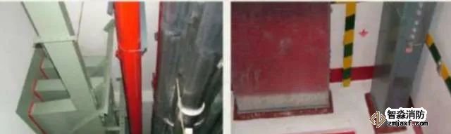 (8)规范《GB50252-2002》第9.3.5条规定,地下式消防水泵接合器顶部进水口或地下式消火栓的顶部出水口与消防井盖底面距离不得大于400mm,井内应有足够的操作空间,并设爬梯。复查中发现某个工程施工的地下式消防水泵接合器顶部进水口与消防井盖底面的距离达1.9m,且井内未设置爬梯,这是不符合规范规定的。