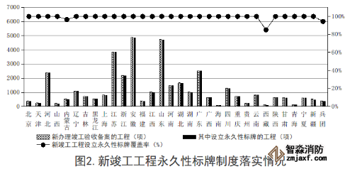 其中,有37333项工程设立永久性标牌,覆盖率为99.7%,安徽省、河南省、湖北省等28个省(区、市)覆盖率达100%,西藏自治区、内蒙古自治区、新疆维吾尔自治区和新疆生产建设兵团未达到100%;有37180项工程建立质量信用档案,覆盖率为99.3%,辽宁省、湖南省、青海省等24个省(区、市)覆盖率达100%。