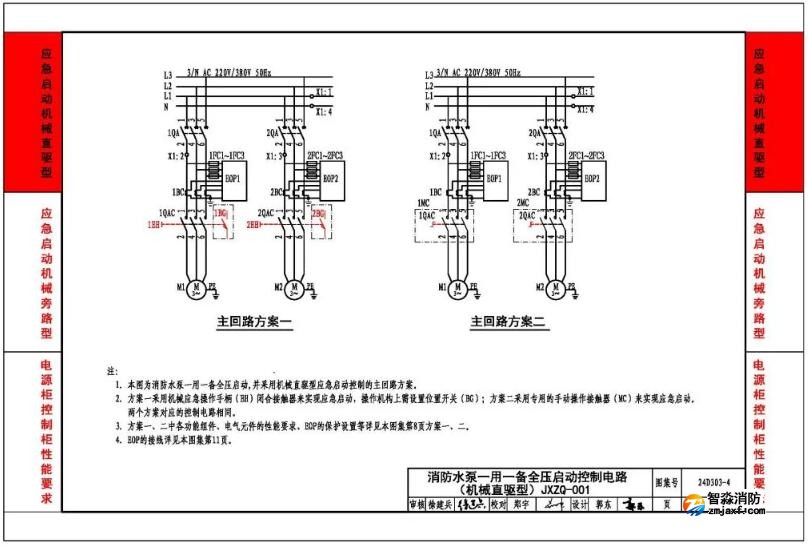 本图集适用于民用与工业建筑内3/N/PE AC220V/380V 50Hz系统中消防水泵机械应急启动的控制。