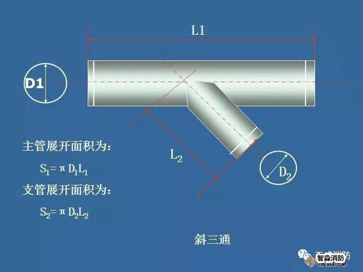 通风管道主管与支管从其中心线交点处划分,以确定中心线长度,如下图所示: