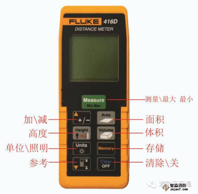 按“体积”键,显示体积符号;按“测量”键,测量第一个距离;按“测量”键,测量第二个距离;按“测量”键,测量第三个距离;该设备在总计行显示结果,并在第二行显示下一个测量值分别测量的距离。