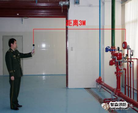 2.用声级计测量报警阀动作后,距水力警铃3m处声压级不低于70dB,图3-2。
