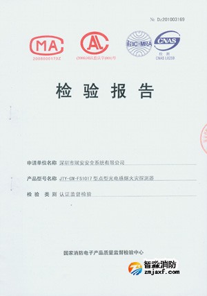 JTY-GM-FS1017点型光电感烟火灾探测器检验报告