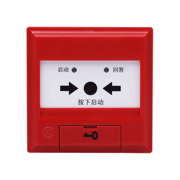 本消火栓按钮采用按压启动方式,通过机械结构进行自锁,可减少人为误触发现象。消火栓按钮内置单片机,完成启动检测及与控制器通讯功能。按下消火栓按钮按片,启动消火栓按钮,消火栓按钮提供独立输出触点,启动消防水泵,火灾报警控制器在确认了消防水泵已启动运行后,点亮消火栓按钮的绿色回答指示灯。