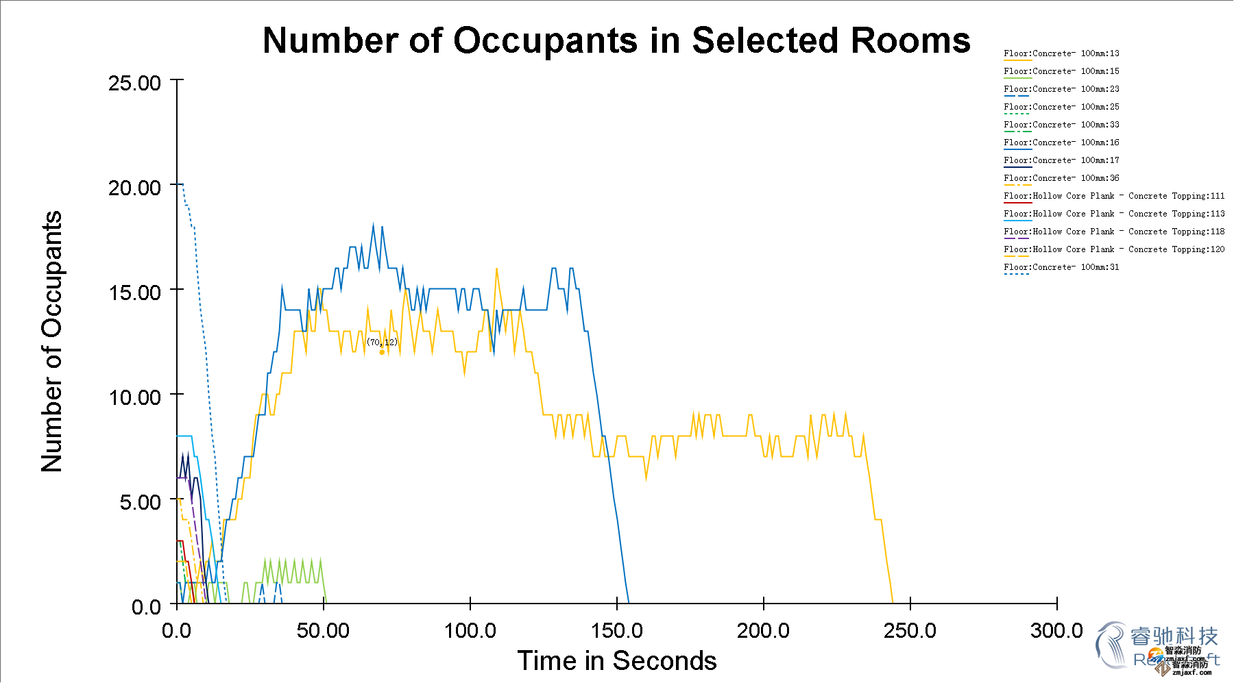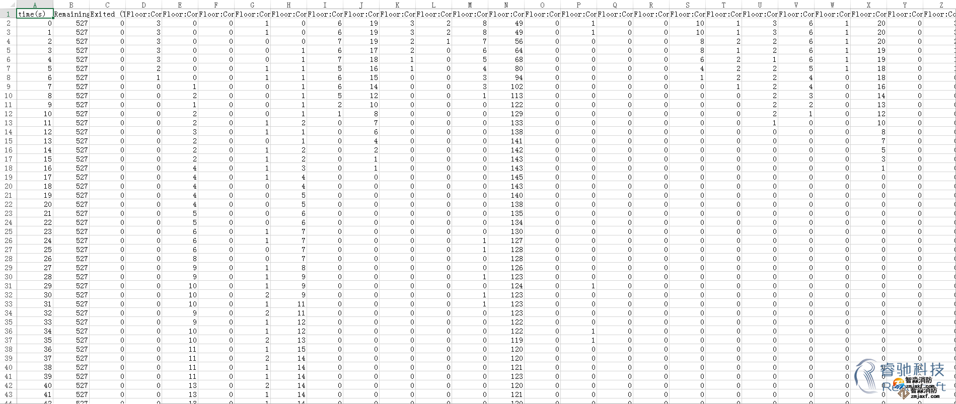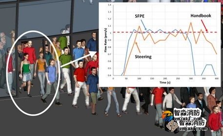 -除了3D模拟视图,Pathfinder还提供了2D时间关系曲线图的CSV文件和记录楼层疏散时间和出入口流通率的文本文件。